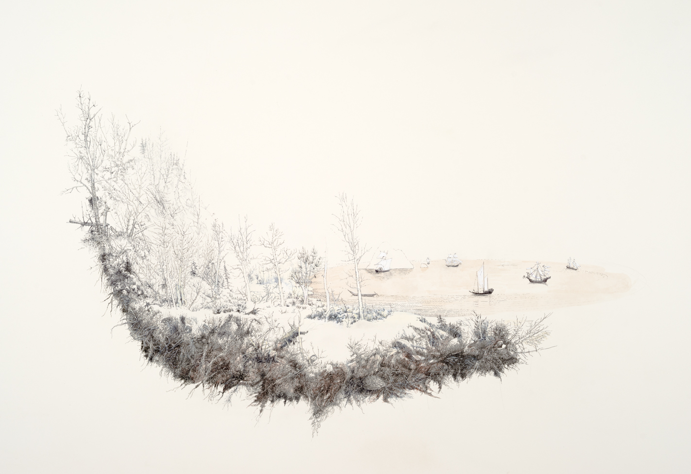 Boats on the Water – ink and gouache on paper