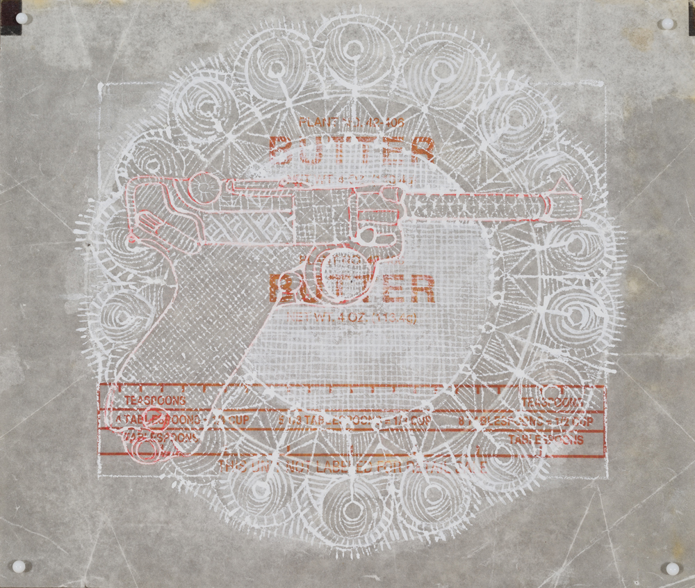Guns and Butter IV – gouache on butter wrapper Published 10/06/2016 at 1000 × 845 in 2014-2015 ← Previous Next →